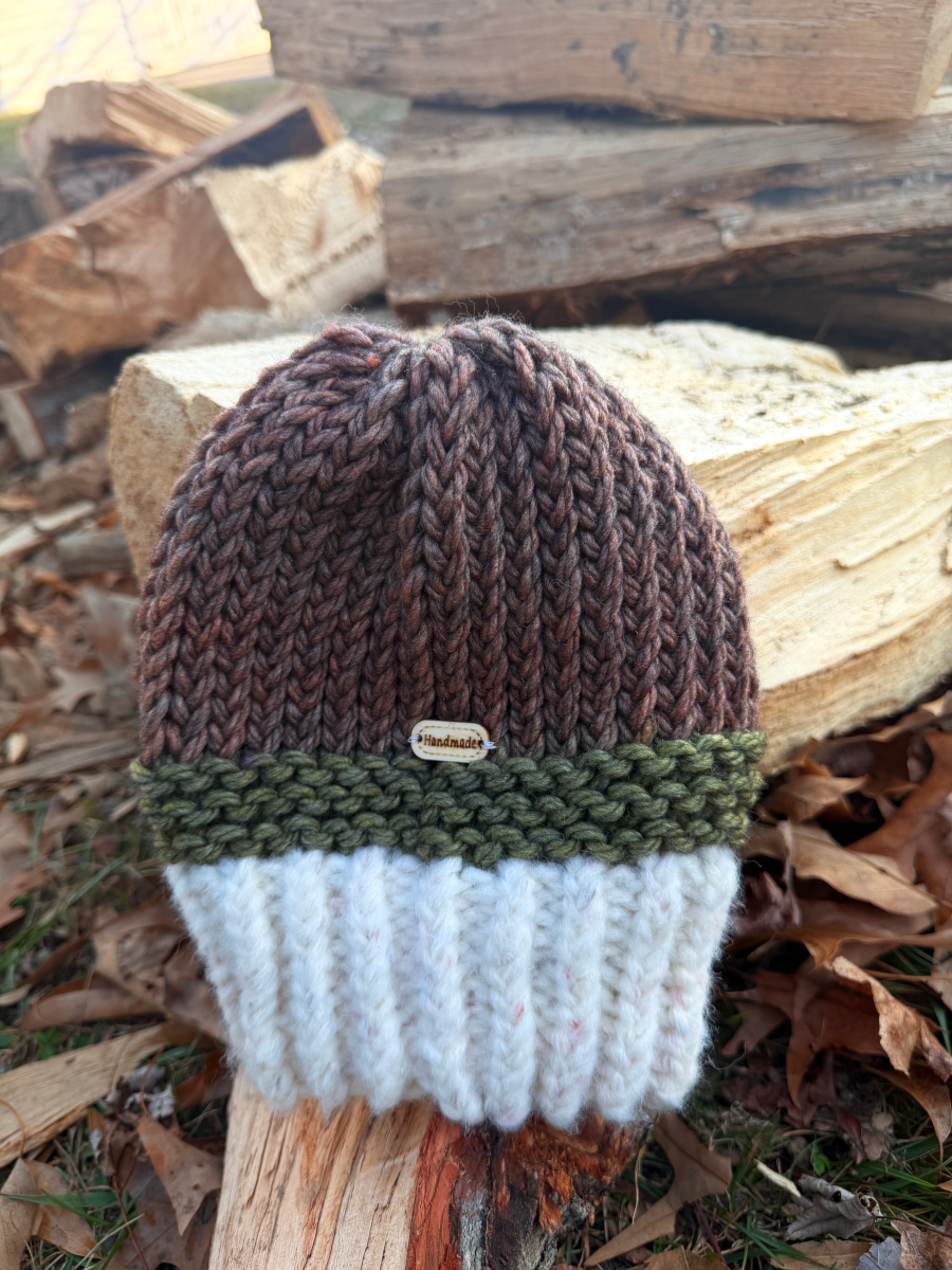 A handmade beanie made from a blend of wool, polyester, nylon, and acrylic offers a superior combination of benefits, balancing natural warmth and breathability with the enhanced durability, shape retention, and easy care of synthetic fibers. This thoughtful blend is designed for versatility, performance, and everyday comfort.